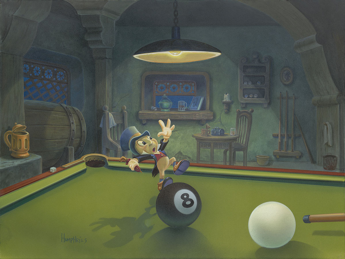 Home / Welcome to Gallery of Art & Collectibles / Humphries Michael – Jiminy Balances the Eight Ball 18×24 SN
